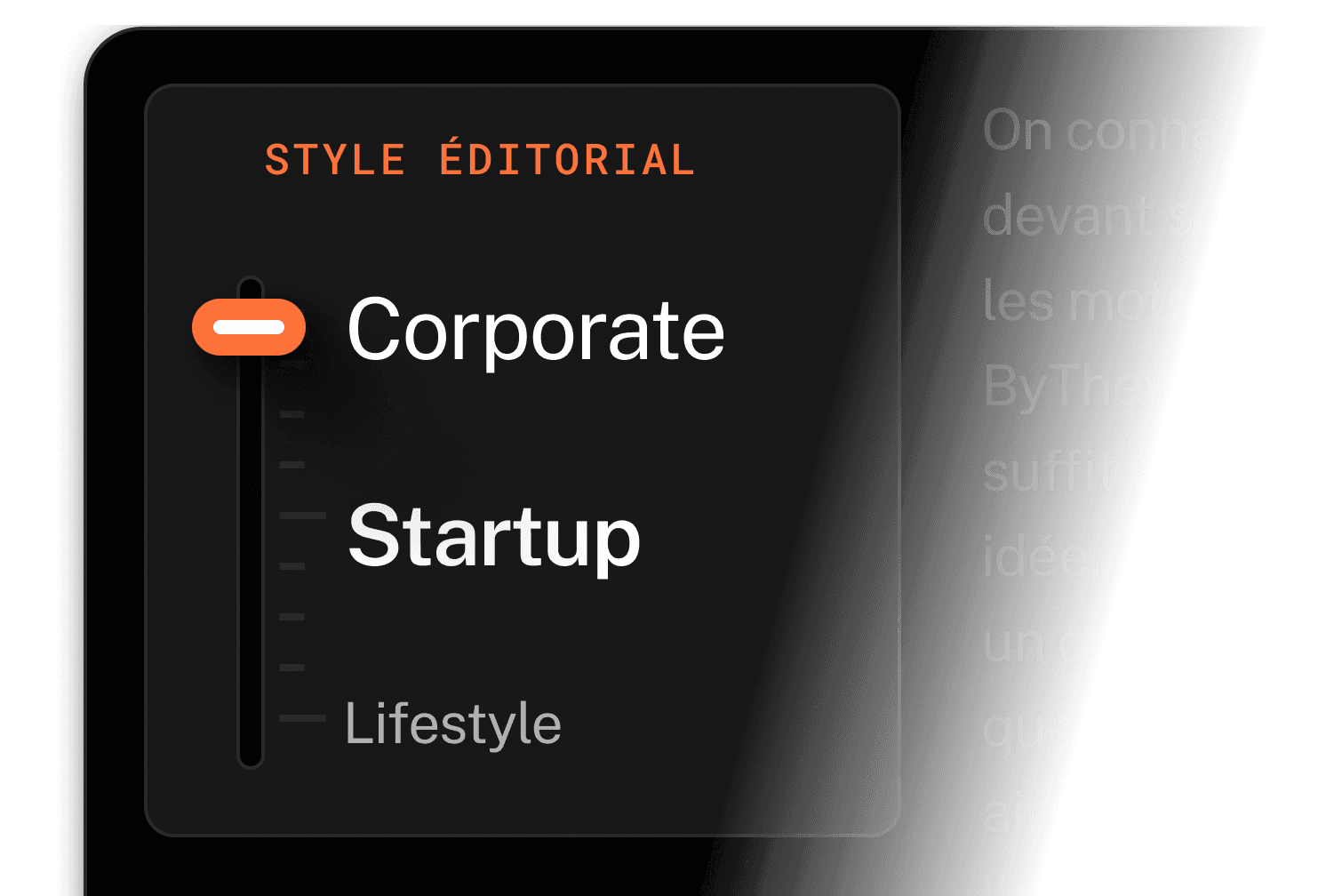 Oui. Notre IA analyse vos contenus existants pour reproduire exactement votre ton. Si vous n'avez pas encore de blog, on vous pose quelques questions pour définir votre style idéal. Tutoiement ou vouvoiement, formel ou décontracté, tout est adapté à votre marque.