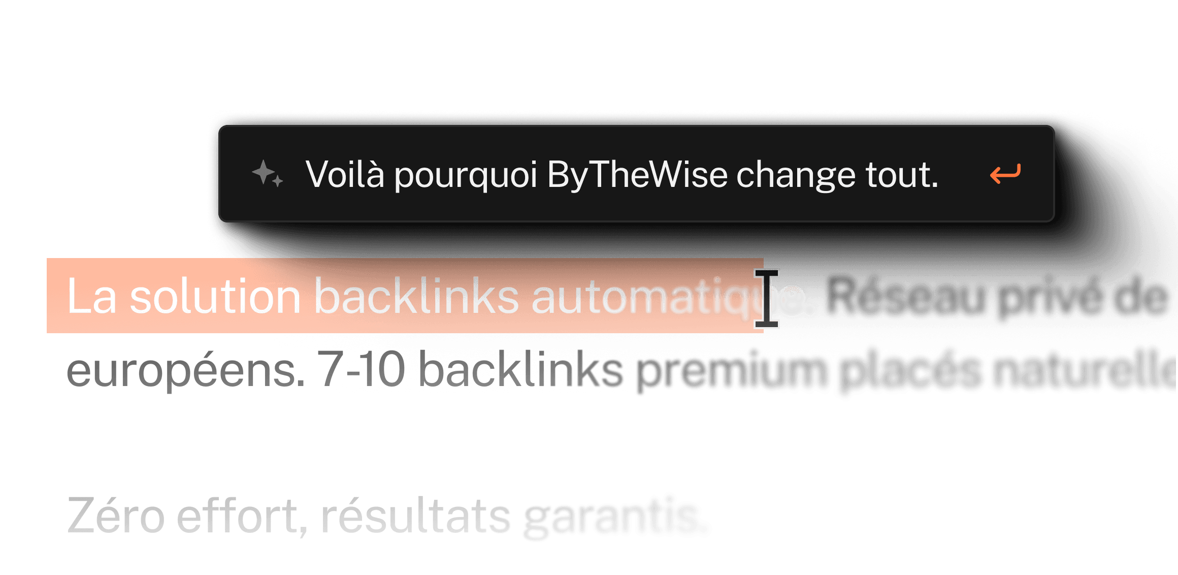 La SEULE solution française qui automatise tout : recherche de mots-clés, création, backlinks de qualité et publication.
