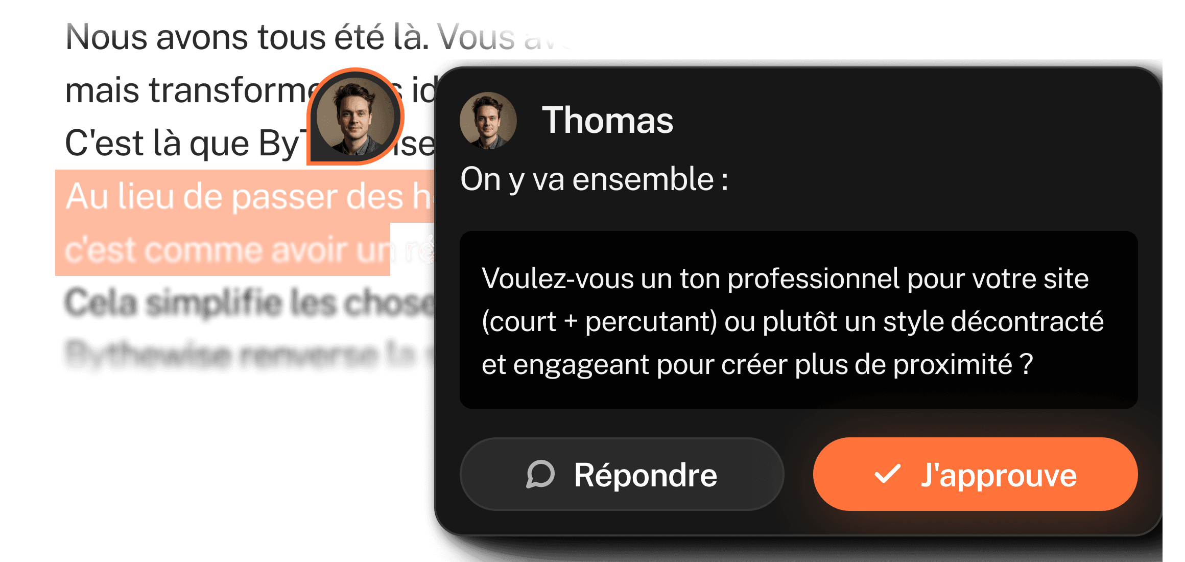 ByTheWise s'adapte à TOUS les secteurs : e-commerce, SaaS, services, B2B, B2C... L'IA apprend votre style unique.